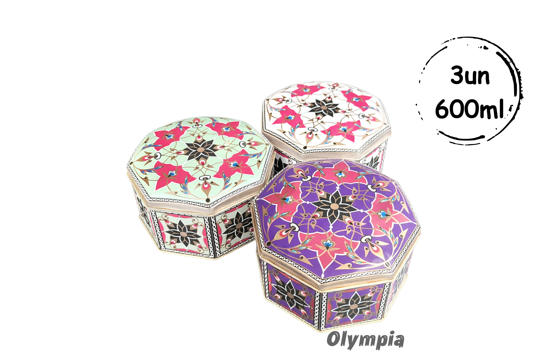 Experimente o luxo discreto da Coleção Taj. Esta lata octogonal, finamente trabalhada, apresenta um design inspirado na arte islâmica, com cores ricas e detalhes intrincados. Uma peça de colecionador que adiciona um toque de sofisticação a qualquer ambiente. Ideal compor kits, armazenar doces, guloseimas, joias ou outros itens valiosos.