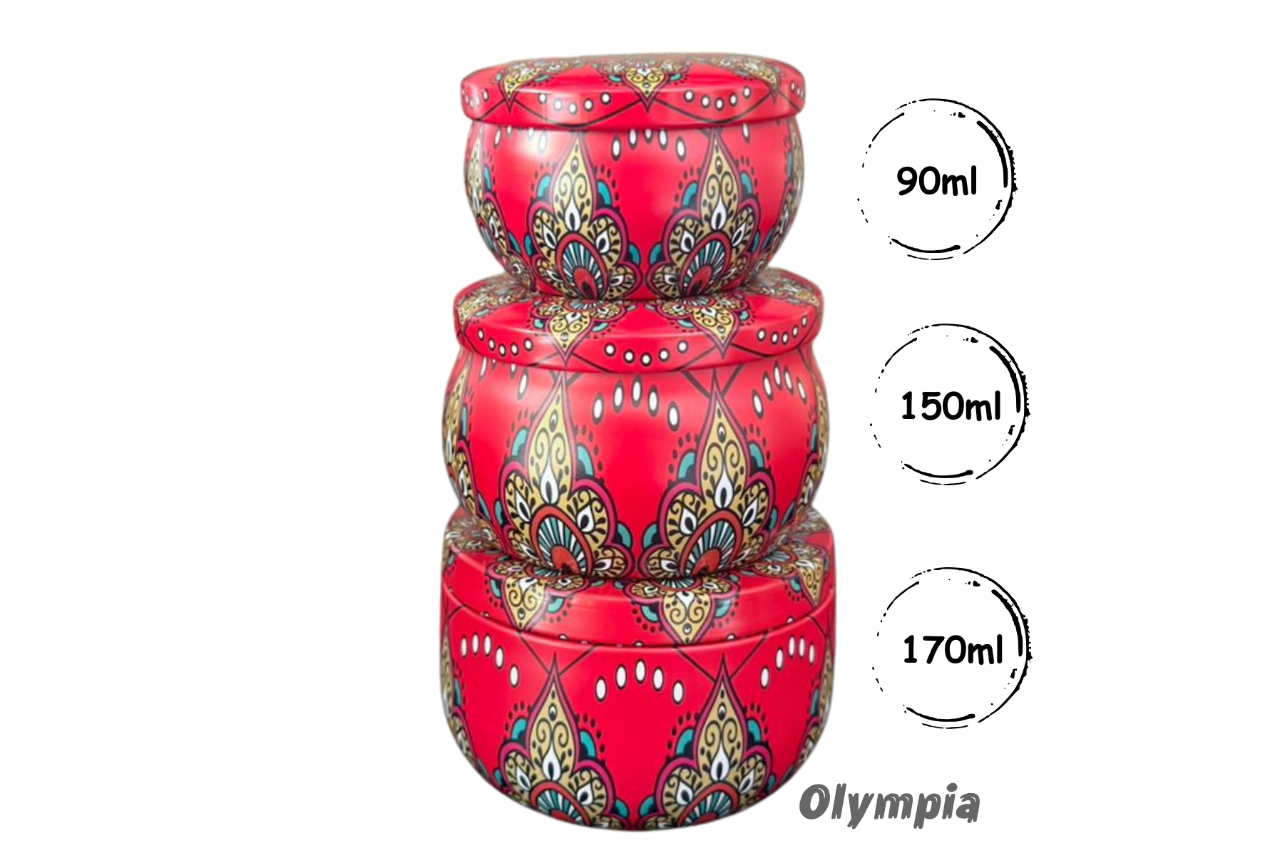 Capacidade Aproximada: 90, 150, 170ml cada lata (Medição feita considerando a densidade da água).