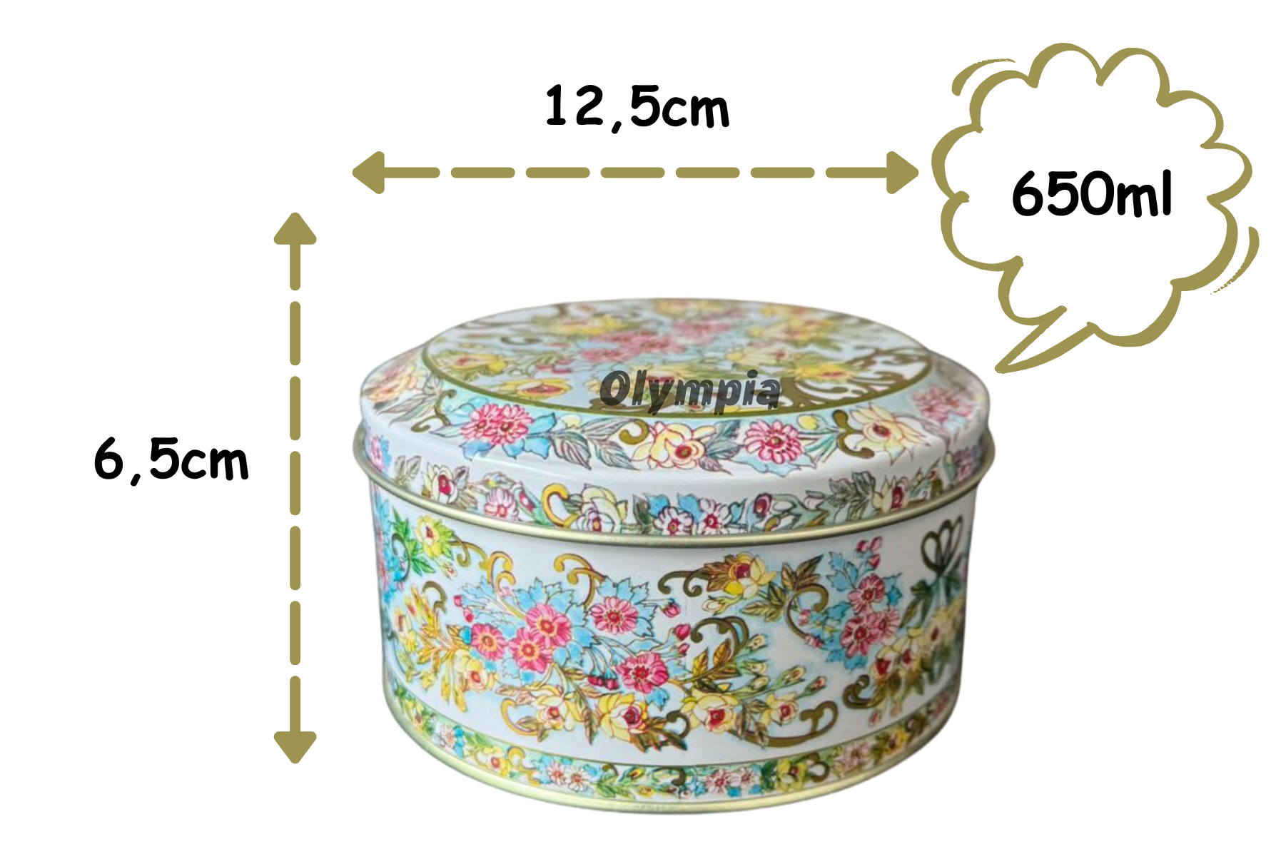 Este elegante recipiente de estanho exibe um design meticulosamente elaborado, destacando uma dança harmoniosa de flores multicoloridas sobre um fundo suave e azul. As bordas douradas acrescentam um toque de sofisticação, acentuando as curvas graciosas da lata. Os motivos florais, com seus núcleos vibrantes e detalhes intrincados, evocam uma sensação de nostalgia e charme vintage. A tampa arredondada continua o tema floral, garantindo que o design seja bonito e esteticamente agradável. Ideal para guardar chá, biscoitos ou pequenos objetos, esta peça não serve apenas à sua função prática, mas também se afirma como um objeto decorativo.