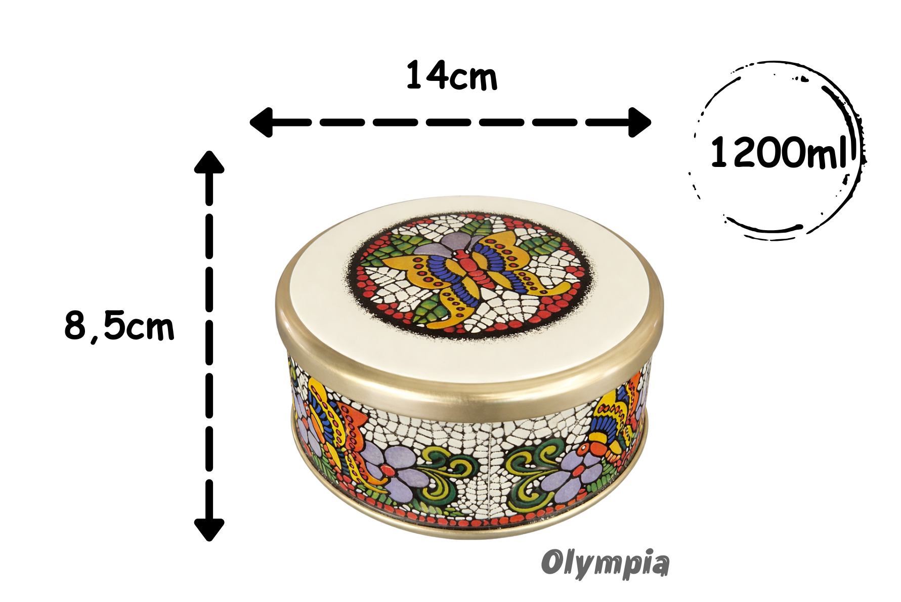 • Design Elegante: Decorada com delicadas flores e borboletas em toda a superfície, nossa lata se destaca pelo seu charme e sofisticação.
