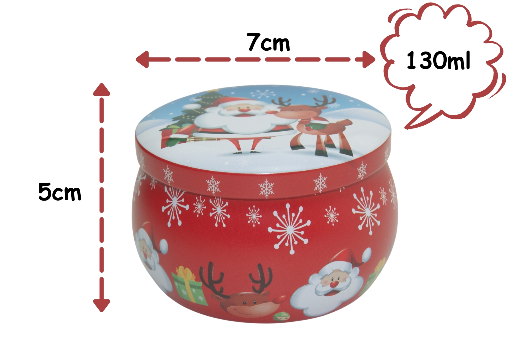 Adicione um toque de charme e elegância à sua decoração com a nossa Lata de Natal para Velas Aromáticas. Com uma capacidade máxima de 130ml, esta lata não só é perfeita para realçar seus aromas favoritos, mas também traz um estilo retrô que complementa qualquer ambiente.