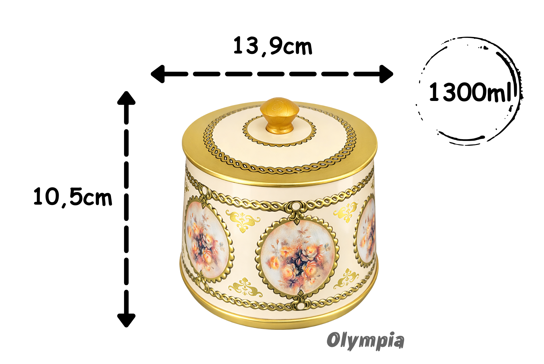 Qualidade Premium: Feita em metal resistente, esta lata não apenas preserva o frescor dos seus quitutes, mas também agrega valor ao seu espaço com sua presença imponente. Sua tampa se encaixa perfeitamente, garantindo que seus doces permaneçam seguros e frescos por mais tempo.