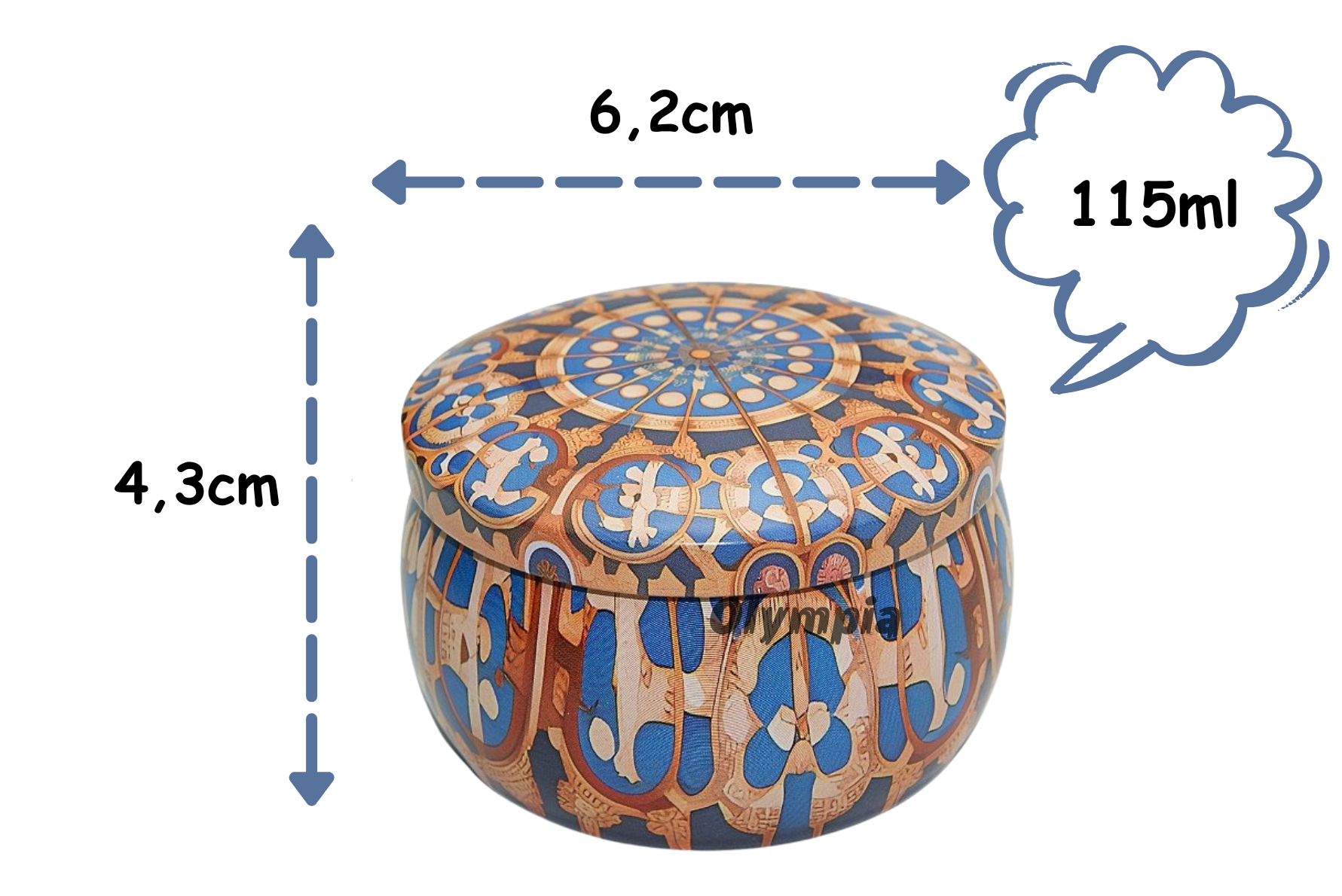 • Materiais de Qualidade: Feita de metal resistente, a lata garante durabilidade e proteção ao conteúdo, mantendo suas velas seguras e bonitas.