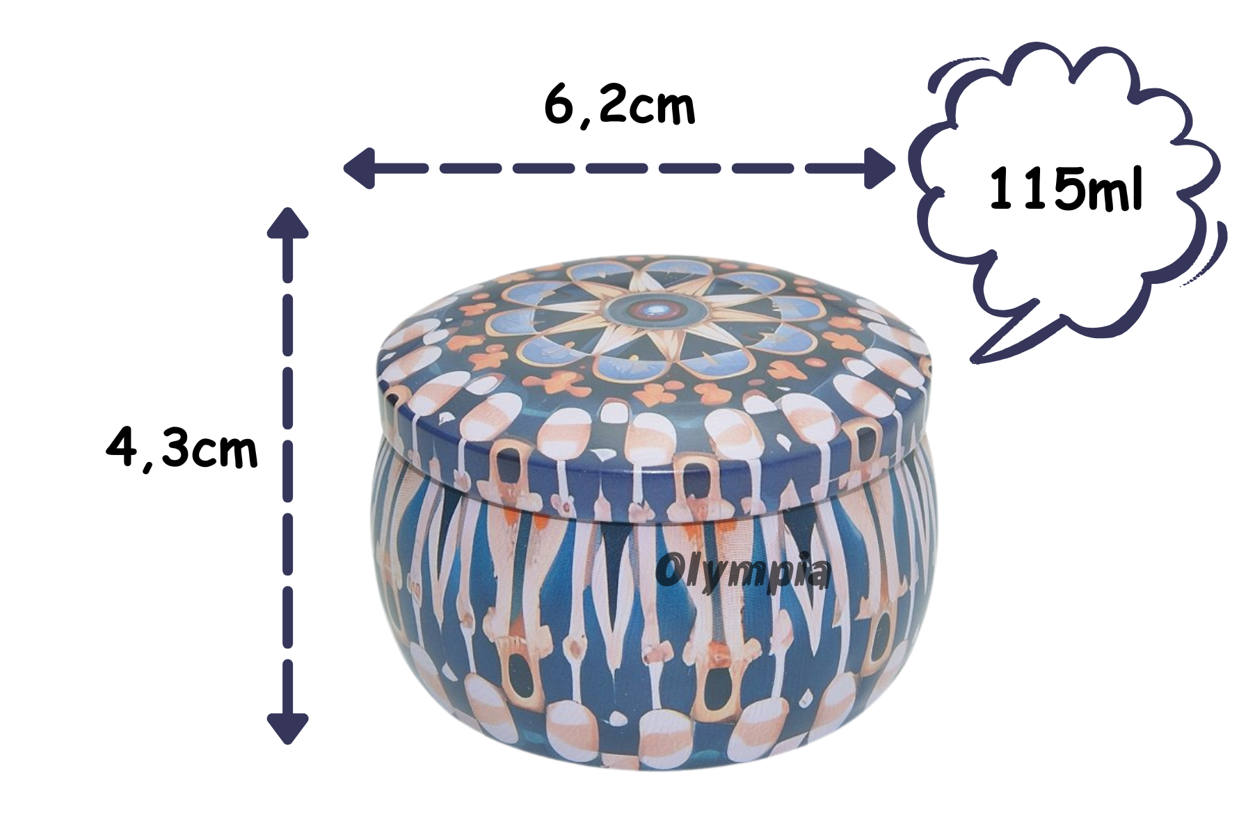 • Materiais de Qualidade: Feita de metal resistente, a lata garante durabilidade e proteção ao conteúdo, mantendo suas velas seguras e bonitas.