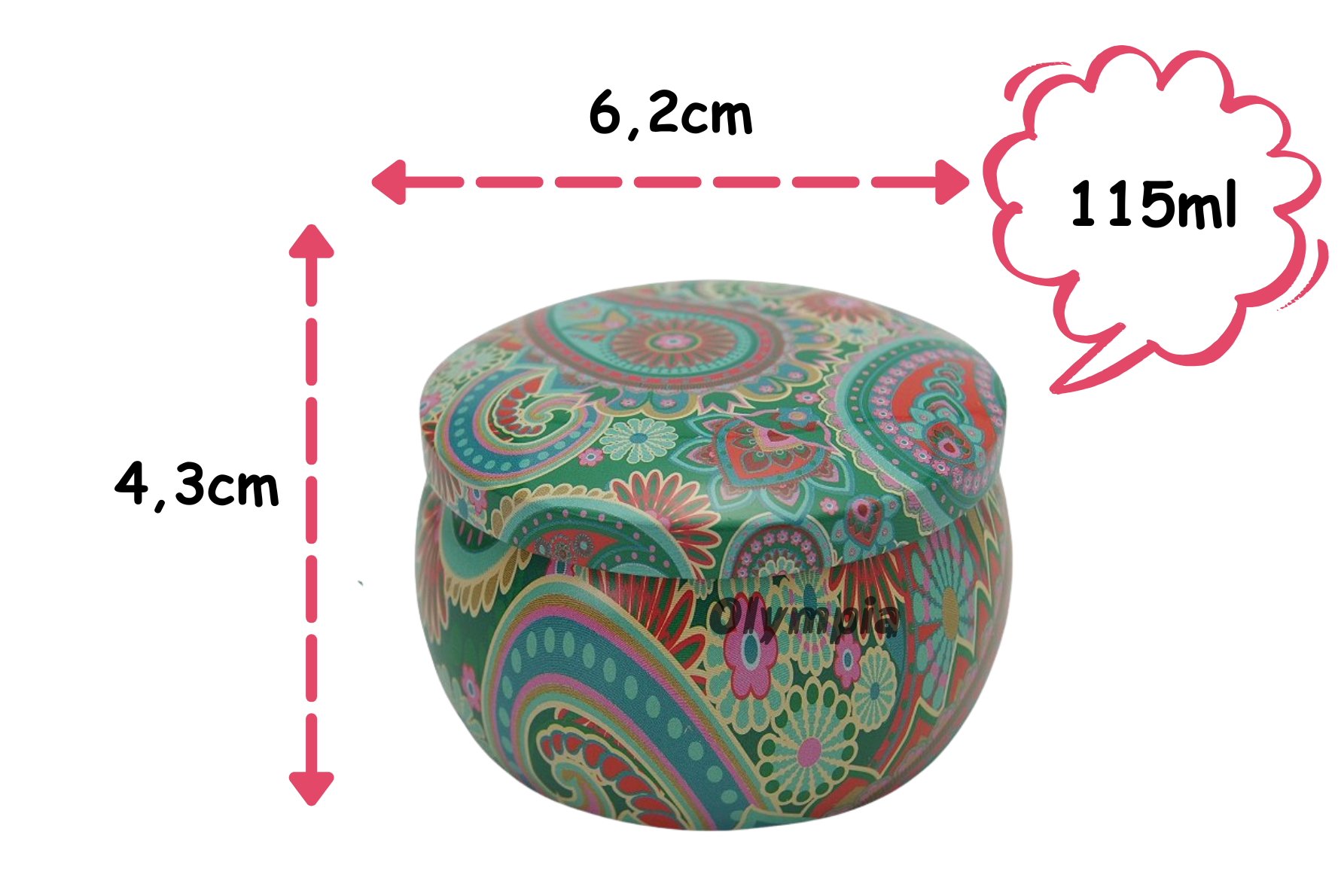 • Materiais de Qualidade: Feita de metal resistente, a lata garante durabilidade e proteção ao conteúdo, mantendo suas velas seguras e bonitas.