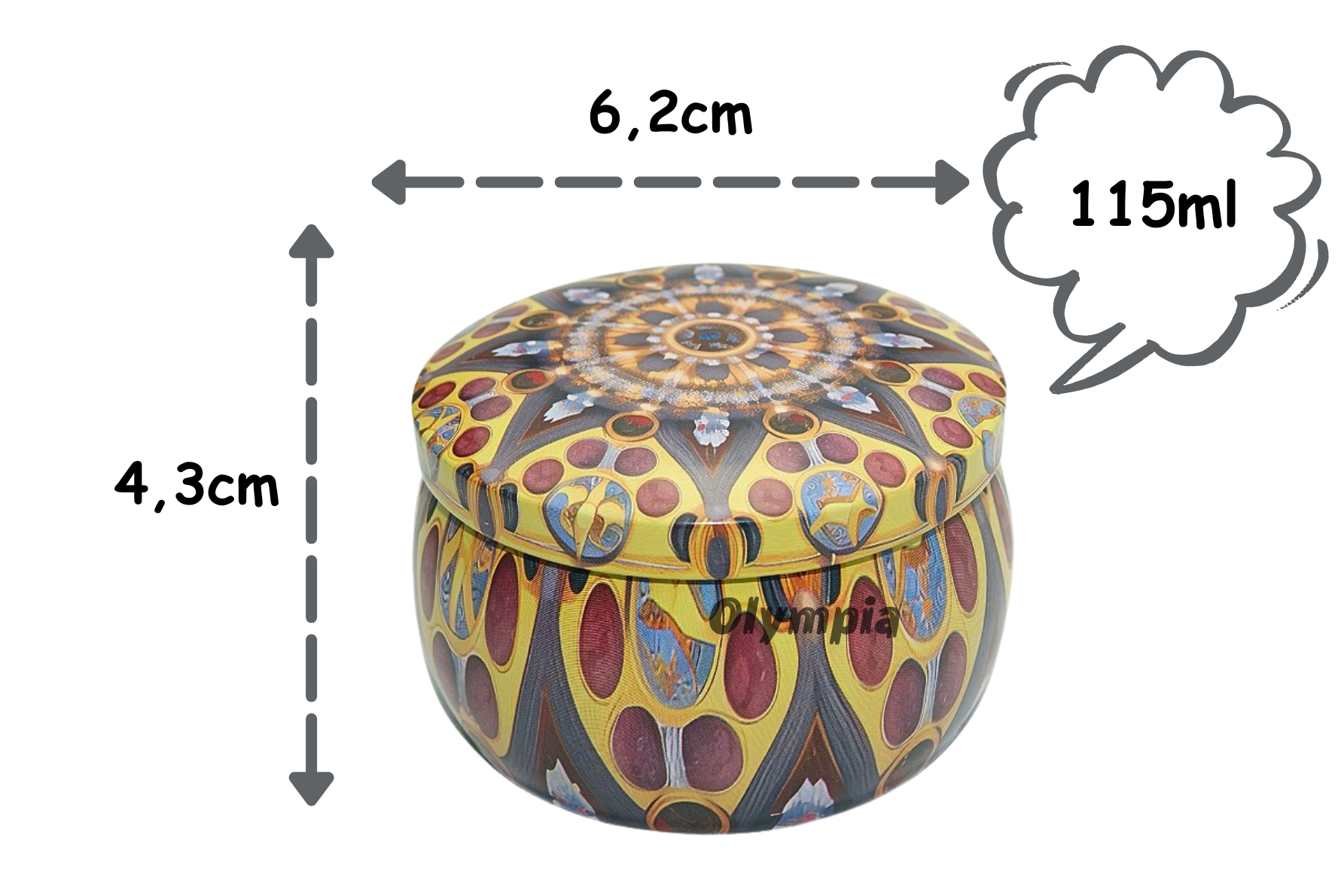 • Materiais de Qualidade: Feita de metal resistente, a lata garante durabilidade e proteção ao conteúdo, mantendo suas velas seguras e bonitas.