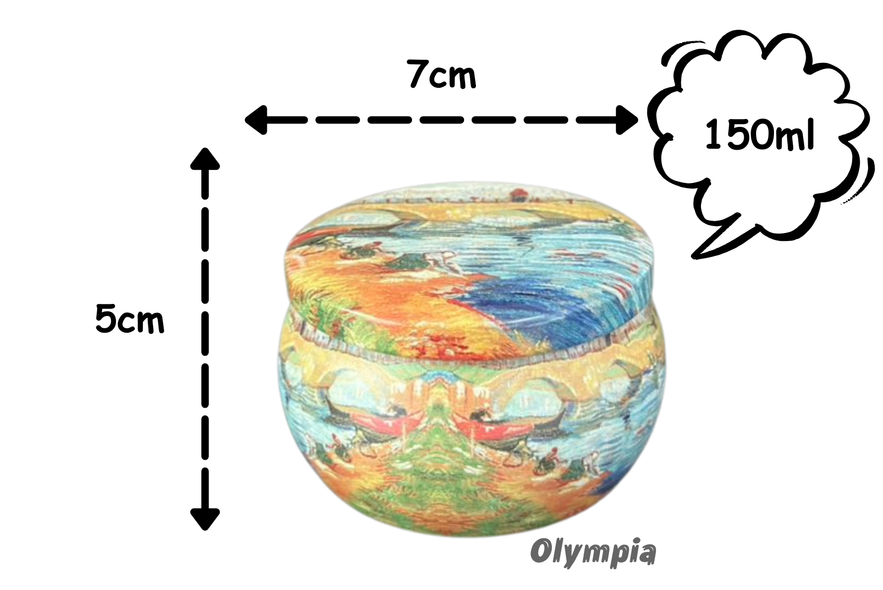 Capacidade Aproximada: 150ml (Medição feita considerando a densidade da água).