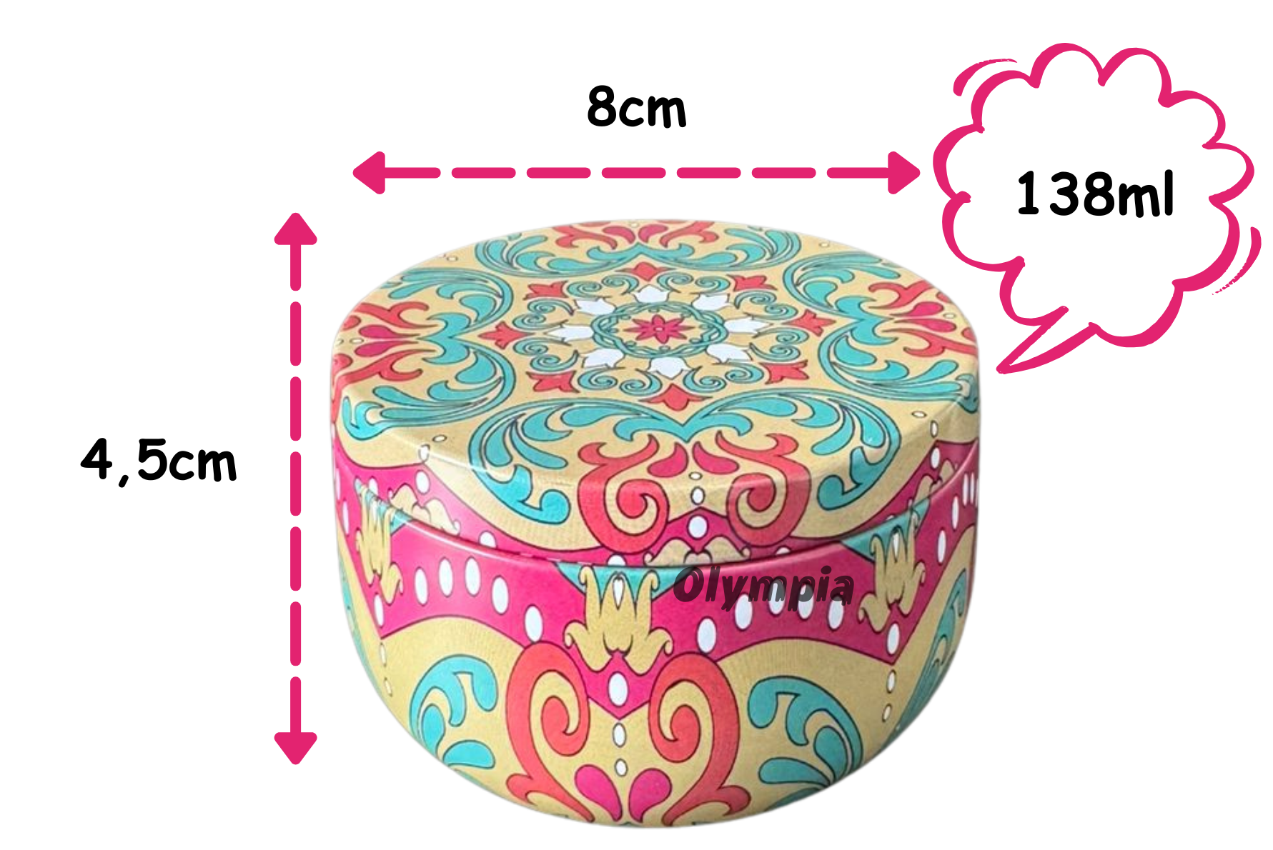 • Materiais de Qualidade: Feita de metal resistente, a lata garante durabilidade e proteção ao conteúdo, mantendo suas velas seguras e bonitas.